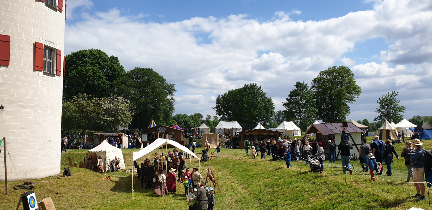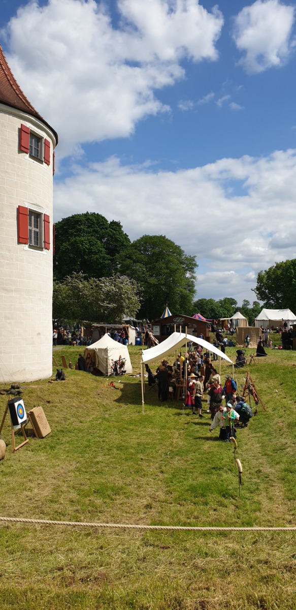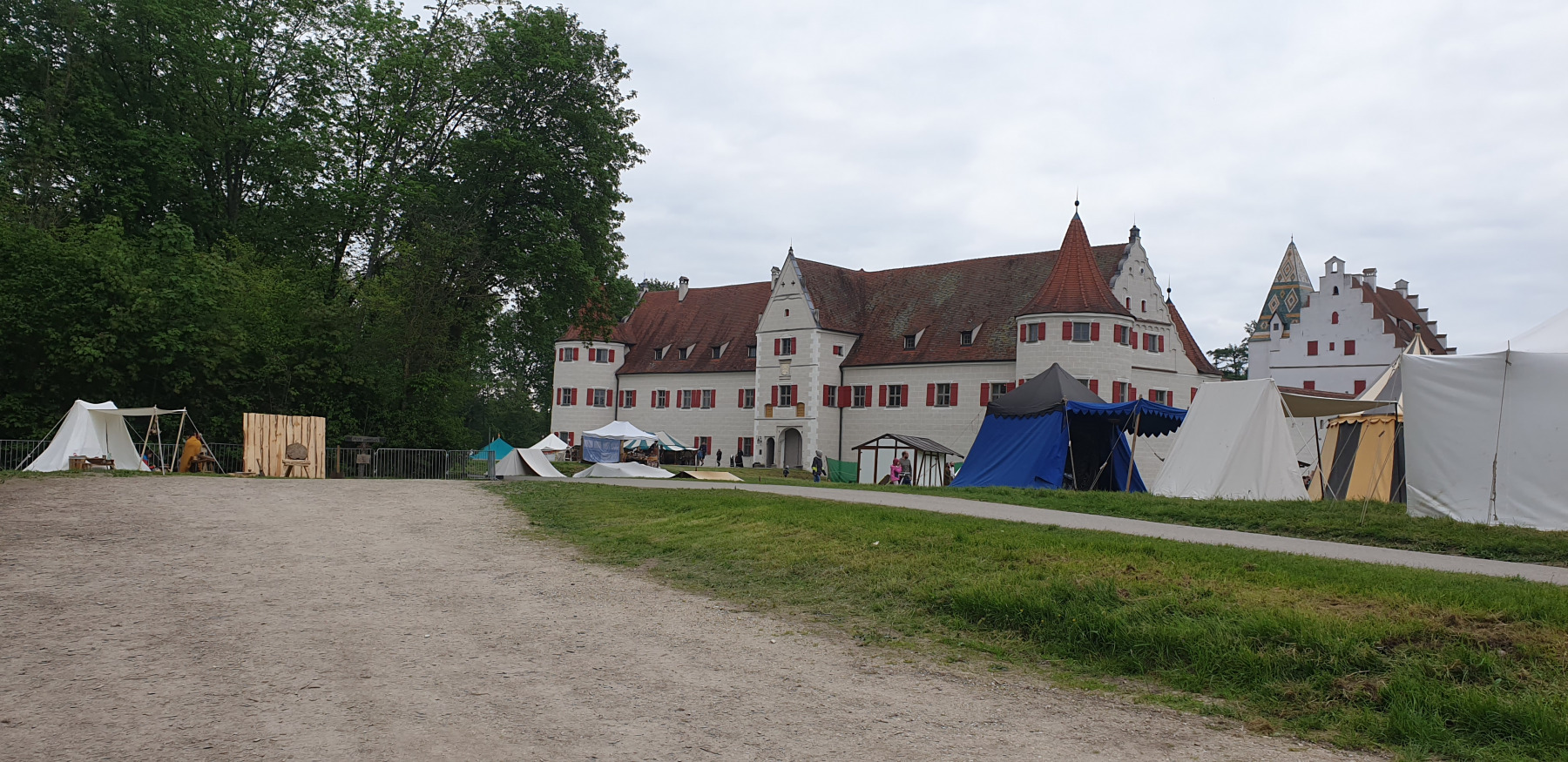 Eigentlich war dieser Mittelaltermarkt bei Schloss Grünau am heutigen Himmelfahrtstag gar nicht eingeplant gewesen. Doch nach unserem Besuch auf die Mittelaltermarkt beim Kloster Wieblingen nahe Ulm haben wir noch einen Abstecher nach Schloss Grünau gemacht . Bei strahlendem Wetter und vielen Menschen in Feiertagsstimmung könnten wir diesen Markt genießen. Sogar ein paar bekannte Gesichter konnten wir hier treffen. Unter anderem auch die wunderbare Elke, die am Axtwurfstand Jung und Alt begeistert hat.