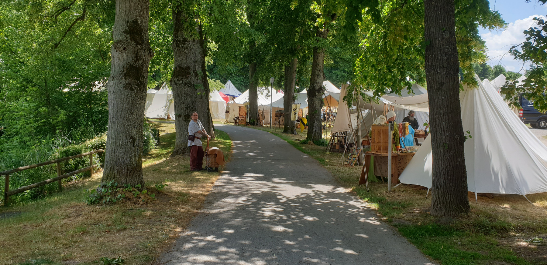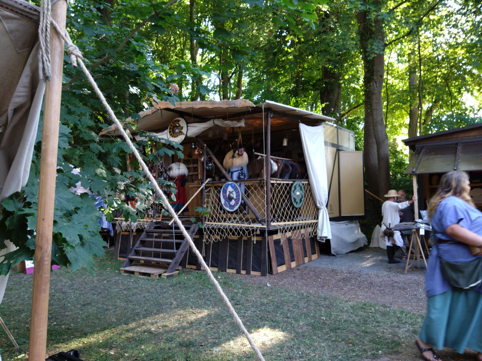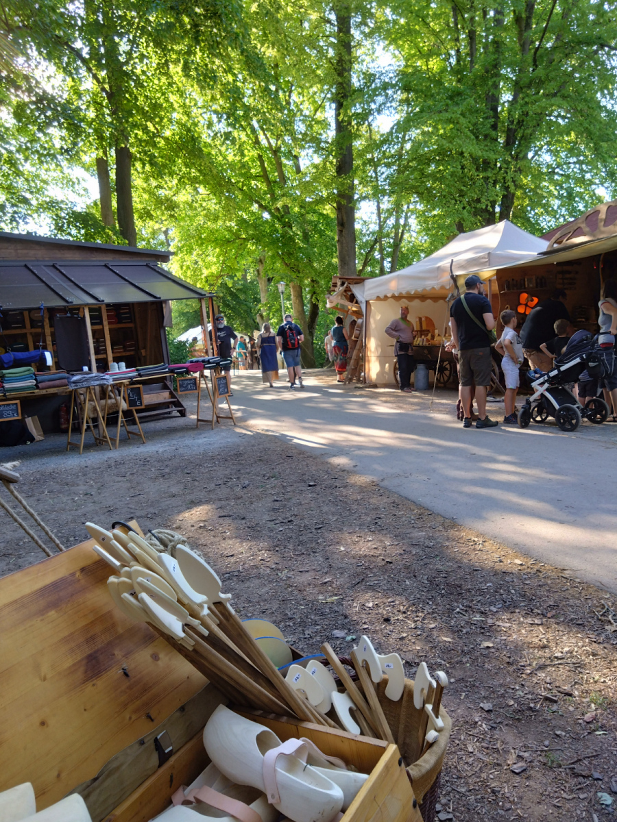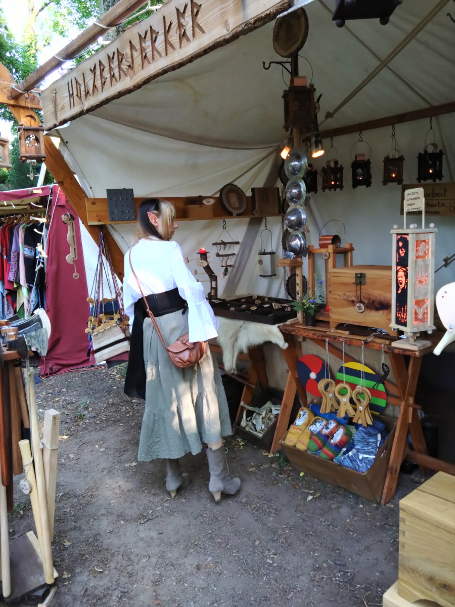 Was mir immer wieder auf Mittelaltermärkten begegnet ist der Zusammenhalt. Wann immer jemand Hilfe benötigt, wird er auch Hilfe bekommen. Ob es von den Händlern, den Lagerleuten oder manchmal sogar den Gästen ist. In meinem Fall haben mir ganz liebe Händler eines Standes für Räucherwerk und magische Utensilien geholfen, meine Schulsohle, die sich an diesem Tag unbedingt mit mir unterhalten wollte, wieder am Schuh zu befestigen.