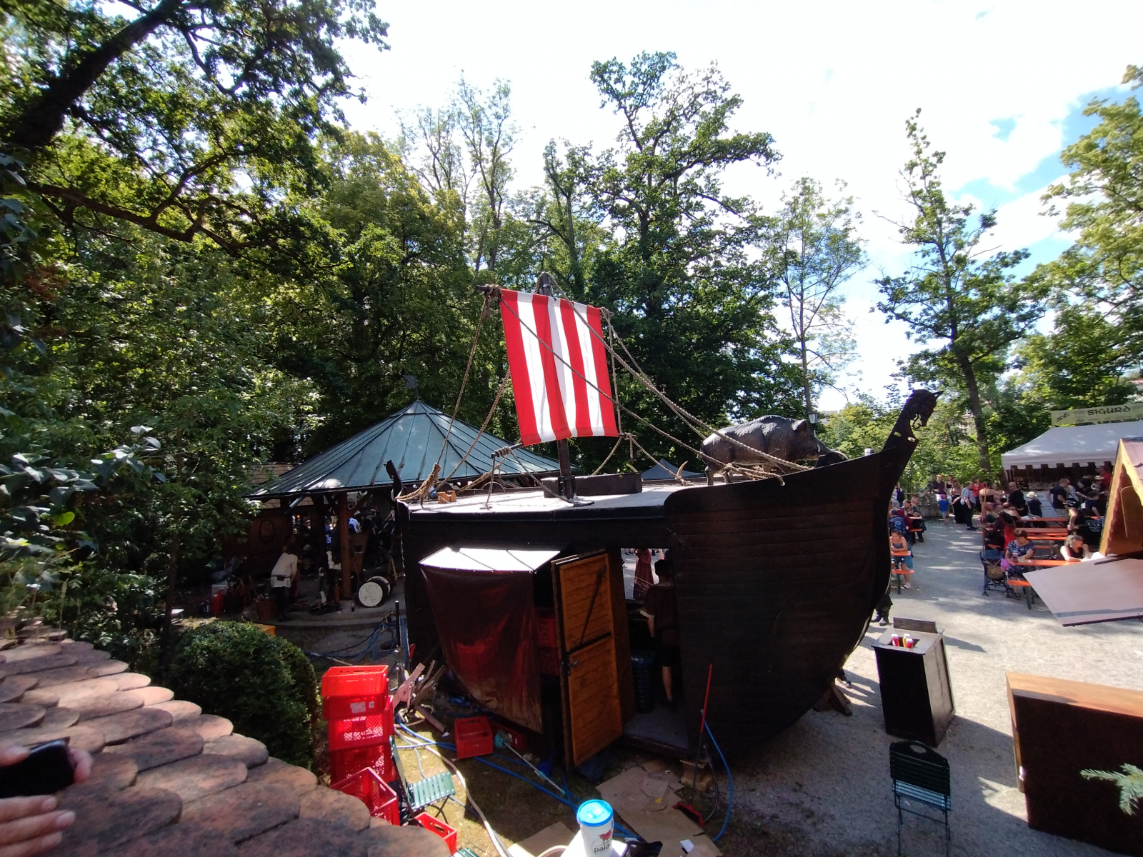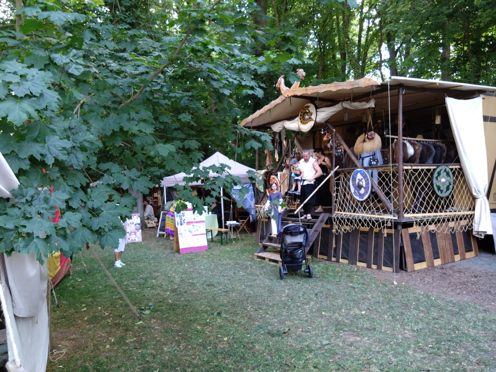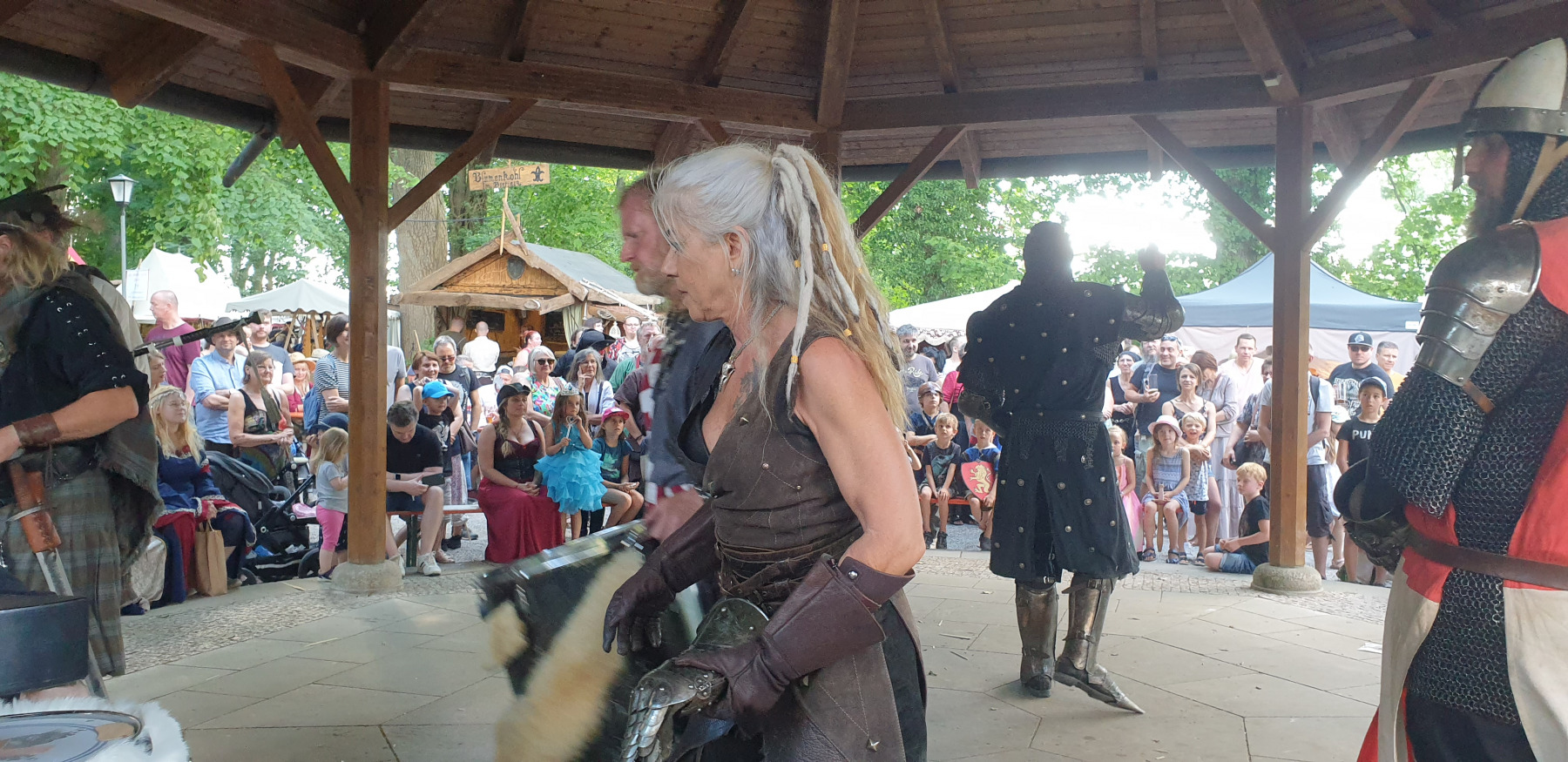 Was mir immer wieder auf Mittelaltermärkten begegnet ist der Zusammenhalt. Wann immer jemand Hilfe benötigt, wird er auch Hilfe bekommen. Ob es von den Händlern, den Lagerleuten oder manchmal sogar den Gästen ist. In meinem Fall haben mir ganz liebe Händler eines Standes für Räucherwerk und magische Utensilien geholfen, meine Schulsohle, die sich an diesem Tag unbedingt mit mir unterhalten wollte, wieder am Schuh zu befestigen.